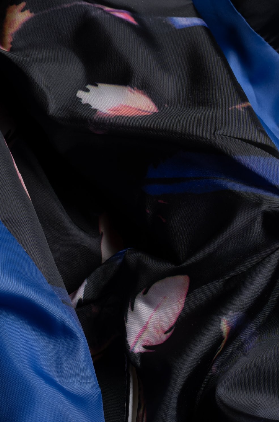 Add a unique and stylish twist to a traditional tuxedo blazer, with its satin finish lapel and feather print design, and a tailored fit cut that will help you make a statement.